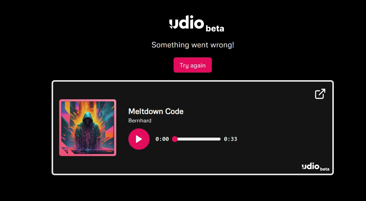 Decrypt tried to generate some samples to compare them against SunoV3, but the platform failed. It even throws a cute screen with a nice error-themed AI song when it collapses.
